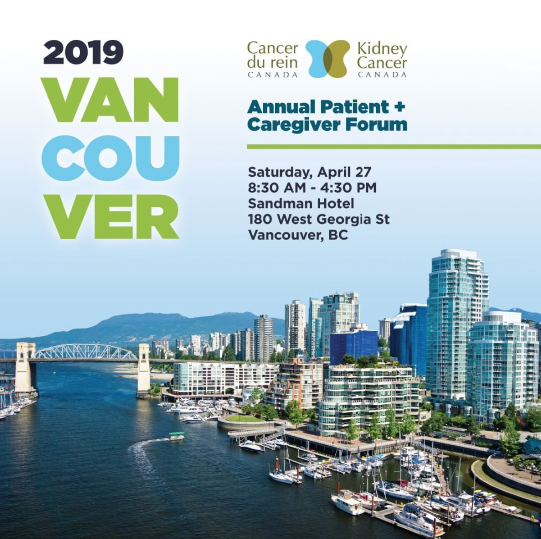 | 05‑May‑2018 | Patient & Caregiver Forum LIVE IT, SURVIVE IT, CURE IT Each year our annual forum brings together patients, caregivers, clinicians and researchers to share information. The all-day session provides an opportunity to network with other patients and caregivers and to talk one-on-one with leading kidney cancer experts.Topics will include the latest strategies and information to help you Live it, Survive it and Cure it. | MEETING DETAILS |